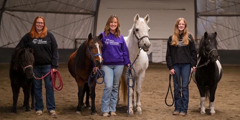 Our Mini Session lessons are designed to grow with the rider so your child can take them for as long as they meet the age (5-10y) and weight (under 100lbs) criteria! As the rider's skills progress, so do the things they learn! Eventually, working up to an unassisted trot, this program is designed to keep kids learning until they are competent enough to move up to a larger pony or small horse and join our full (60-min) lesson program. We have 4 sizes of horses to work with so there are always new goals to achieve!